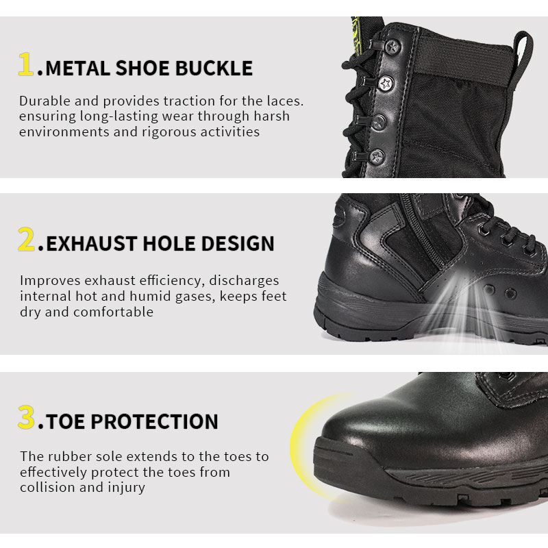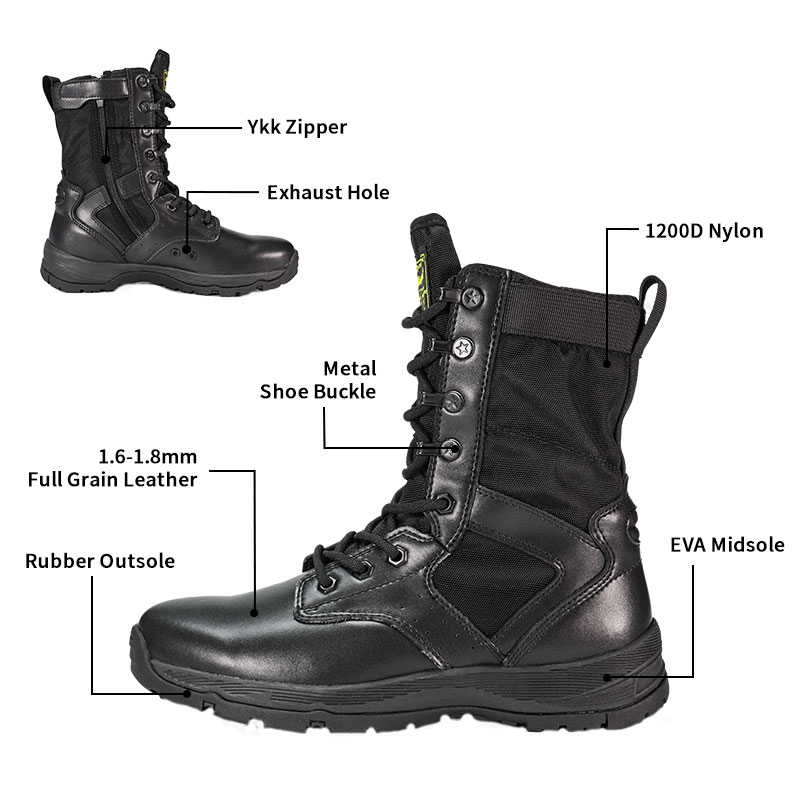 Disse politistøvlene i full gummi yttersåle er på lager og klare til å sendes, med bestillinger fra bare 10 par. For mer informasjon eller prisforespørsler, ta gjerne kontakt når som helst. Tilpasning er også tilgjengelig med en minimumsbestilling på 800 par. Og denne modellen har følgende fordeler: