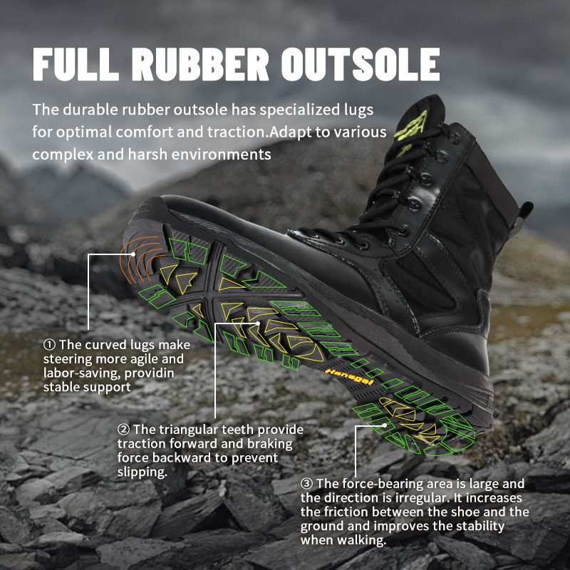 Bygget for de tøffeste samtalene, gir politistøvlene i full gummi yttersåle uovertruffen holdbarhet og trekkraft i ethvert terreng. Disse støvlene er designet for å støtte politifolk gjennom lange timer og uforutsigbare forhold, og har en robust sklisikker yttersåle, forsterket struktur for ankelstabilitet og komfort hele dagen – slik at du holder deg fokusert, beskyttet og klar for det neste. Send oss en forespørsel for mer informasjon.