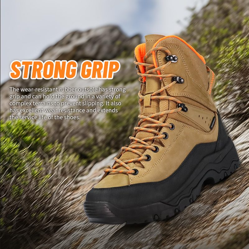 Disse Strong Grip Anti-Slip vanntette tursko er tilgjengelige for tilpasning i farger, materialer og detaljer, med MOQ på 800 par, ideelle for merkevaresamarbeid og gruppeanskaffelser. Og disse trekkingskoene har følgende fordeler: