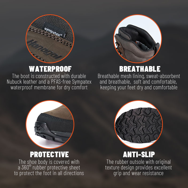 Disse Sympatex vanntette, slitesterke turskoene er på lager og klare til å sendes, med bestillinger fra kun 10 par. For mer informasjon eller prisforespørsler, ta gjerne kontakt når som helst. Tilpasning er også tilgjengelig med en minimumsbestilling på 800 par. Og denne modellen har følgende fordeler:
