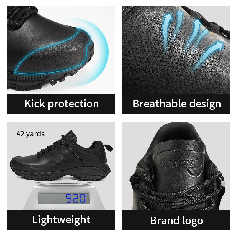 Disse vannsprutbeskyttelses-trekkingskoene i skinn er på lager og klare til å sendes, med bestillinger fra bare 10 par. For mer informasjon eller prisforespørsler, ta gjerne kontakt når som helst. Tilpasning er også tilgjengelig med en minimumsbestilling på 800 par. Og denne modellen har følgende fordeler: