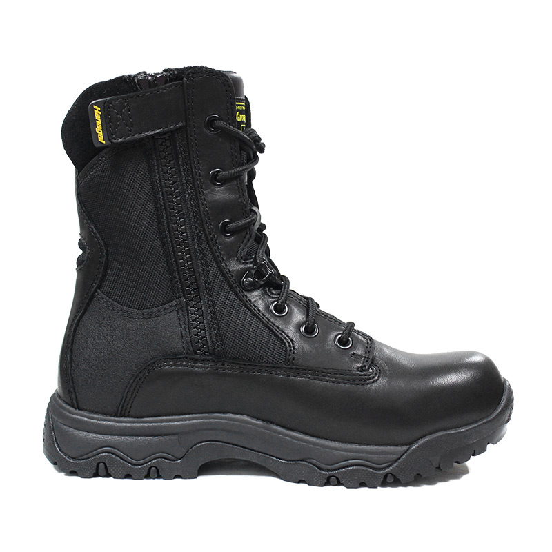 Fullnarvet skinn møter YKK-pålitelighet. YKK-glidelås-politistøvlene i fullnarvet skinn kombinerer førsteklasses skinnholdbarhet med den pålitelige ytelsen til YKK-glidelåser – raske på, sikker passform og bygget for å vare gjennom hvert skift. Send oss en forespørsel for mer informasjon.